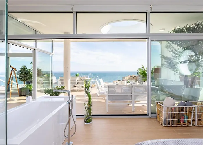 A 200 m²-es Ensuite Deluxe Jacuzzi & Parking Privado Fuengirola apartman olyan wellness lehetőségeket kínál a vendégek számára Fuengirola Carvajal Beach körzetében, mint a szolárium, jakuzzi és pezsgőfürdő. A 3 hálószobás apartman rendelkezik úszómedencével és tengerre néző kilátással a teraszról.